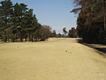 このホールで罠に!右に一直線で・・・実は少し飛びすぎてやや林の中へ。今度もまた目の前に木が立ちはだかります。 また低いボールを打ったのですが、今回は運悪くカコーン!とボールバック! そこからグリーンにものらずそれでも寄せワンでボギー。。。 |