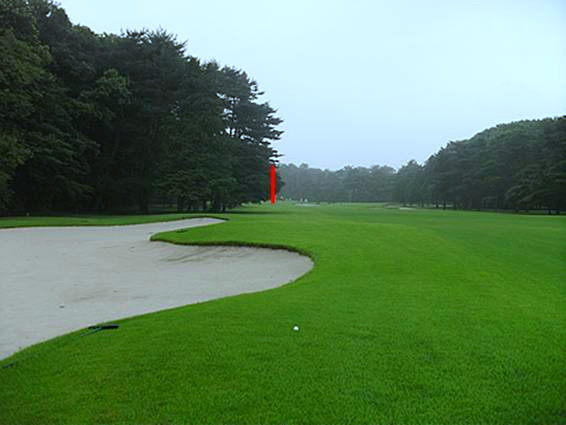 鶴舞CCもこういったシチューションが多く、安全に右へ逃げればセカンドの距離は残るもグリーンを狙いやすい。