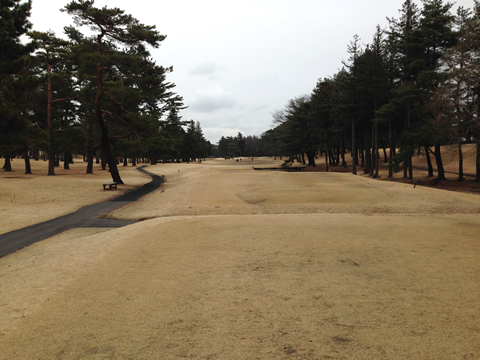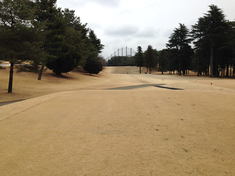 写真でもわかるように奥から手前にかけてかなりの傾斜があります。転がし?上げる?どうしよう?って感じで迷いながらのSWは見事にドトップ(愕)冬芝が難しいと言い訳ばかりしないで練習あるのみですね~。結局5オン1パットのボギー。