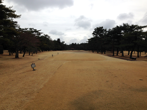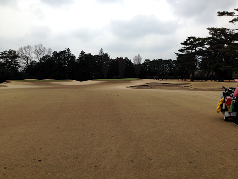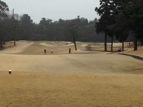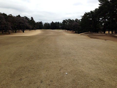 写真でもわかるように奥から手前にかけてかなりの傾斜があります。転がし?上げる?どうしよう?って感じで迷いながらのSWは見事にドトップ(愕)冬芝が難しいと言い訳ばかりしないで練習あるのみですね~。結局5オン1パットのボギー。