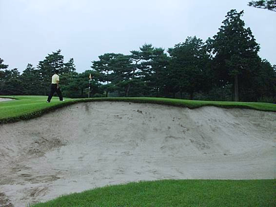 さて、これが先ほどの理由、所謂これが武蔵CCの牙、アリソンバンカーです。身長よりも高いバンカーを久しぶりに見ました。