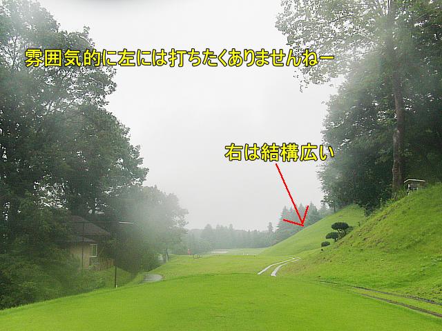 フェアウェーからは解り難いのですが・・・結構な右ドッグレッグホールでして打つ前にキャディさんが間違っても右はだめだと。